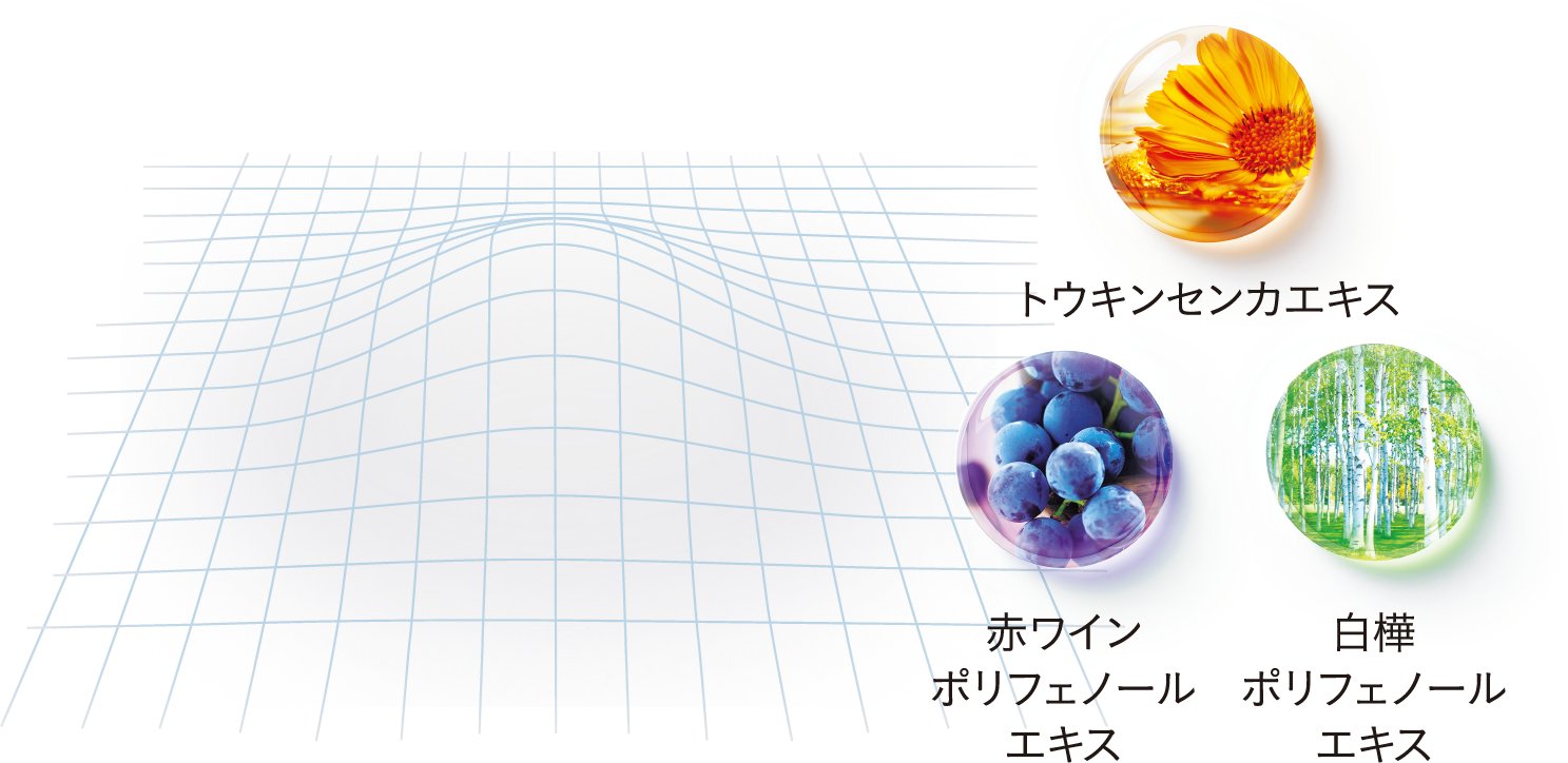 ※1 独自の3種のエキスを配合したハリを感じられる処方設計 ※2 トウキンセンカ花エキス、ワインエキス、シラカンバ樹皮エキス、BG(保湿)
