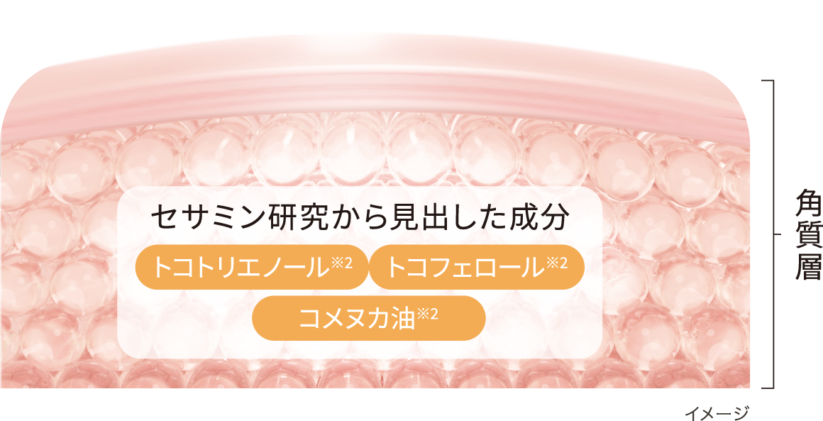 ※1 セサミンシリーズの商品開発に関わる研究のこと ※2 エモリエント
