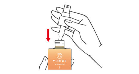 STEP01で外した付け替え用レフィルに、STEP02で外したポンプヘッドを差し込んで、しっかりと動かなくなるまで回して閉めてください。