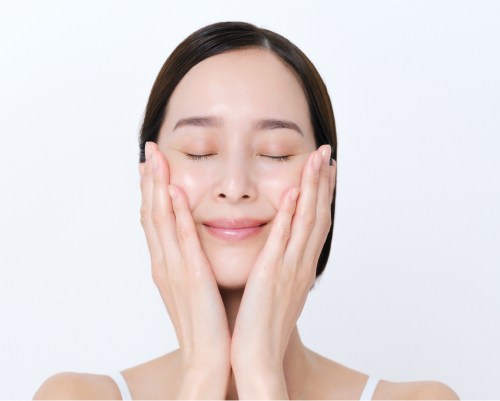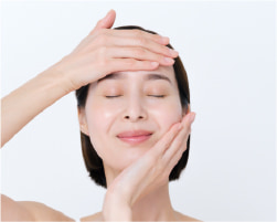 3層構造を壊さないために、手のひらでつぶさず、おでこ・両頬・鼻の頭・あごの5点に置いてください。