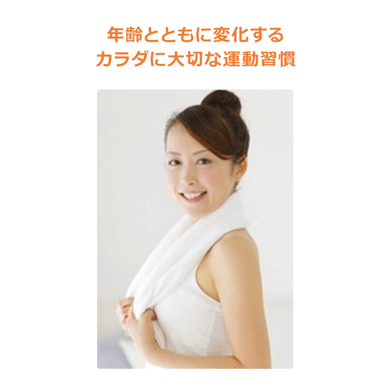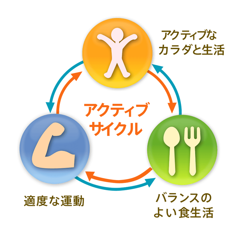 筋肉量が維持できると、基礎代謝量が増えるばかりでなく、筋力によってカラダが軽く感じられ、カラダを動かすことがもっと楽に、楽しくなります。自分に合った適度な運動を習慣化して、アクティブなカラダと生活を手に入れましょう。